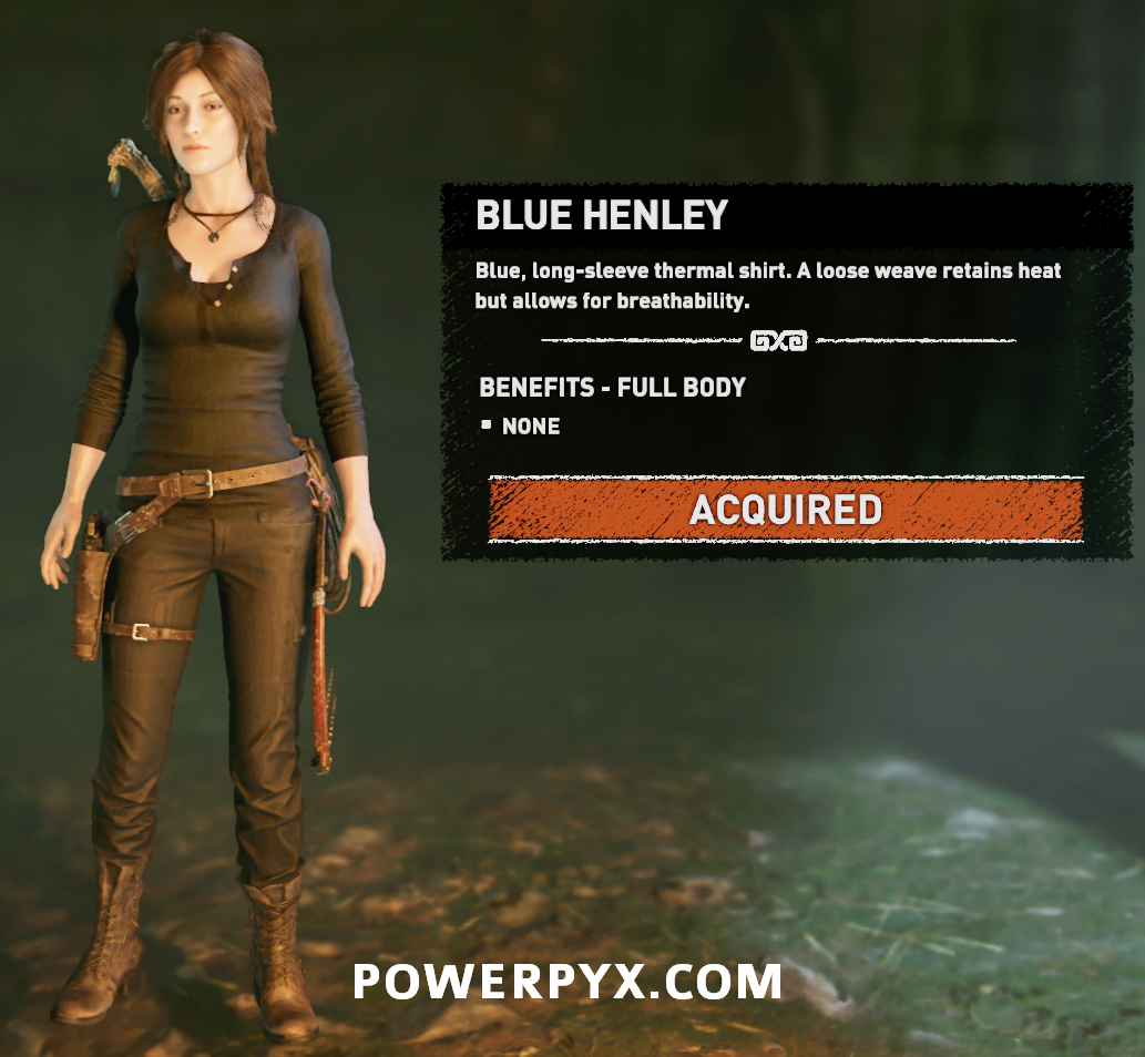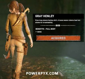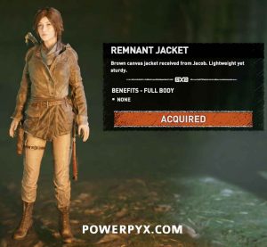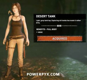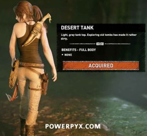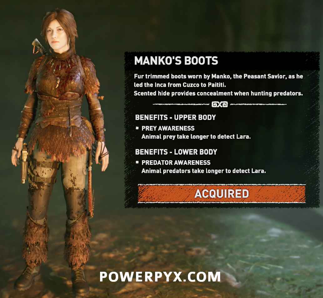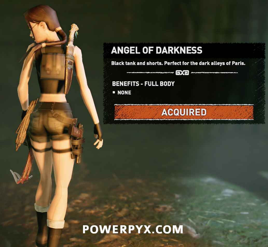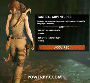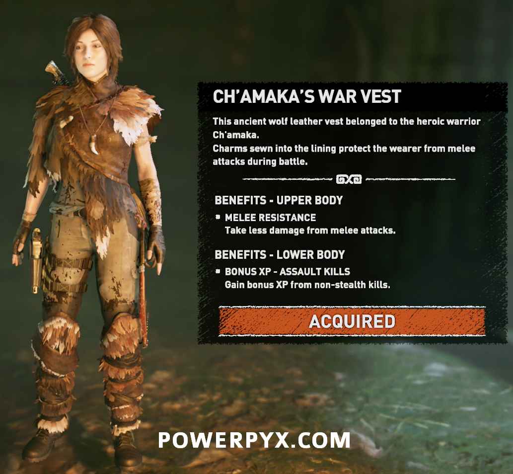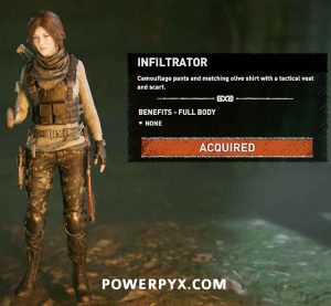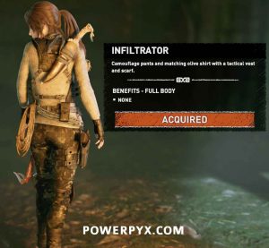 Benefits Upper Body: Enemy Awareness – Enemies take longer to detect and identify Lara as a threat.