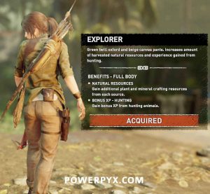 Benefits Upper Body: Bonus XP – Hunting: Gain bonus XP from hunting animals.