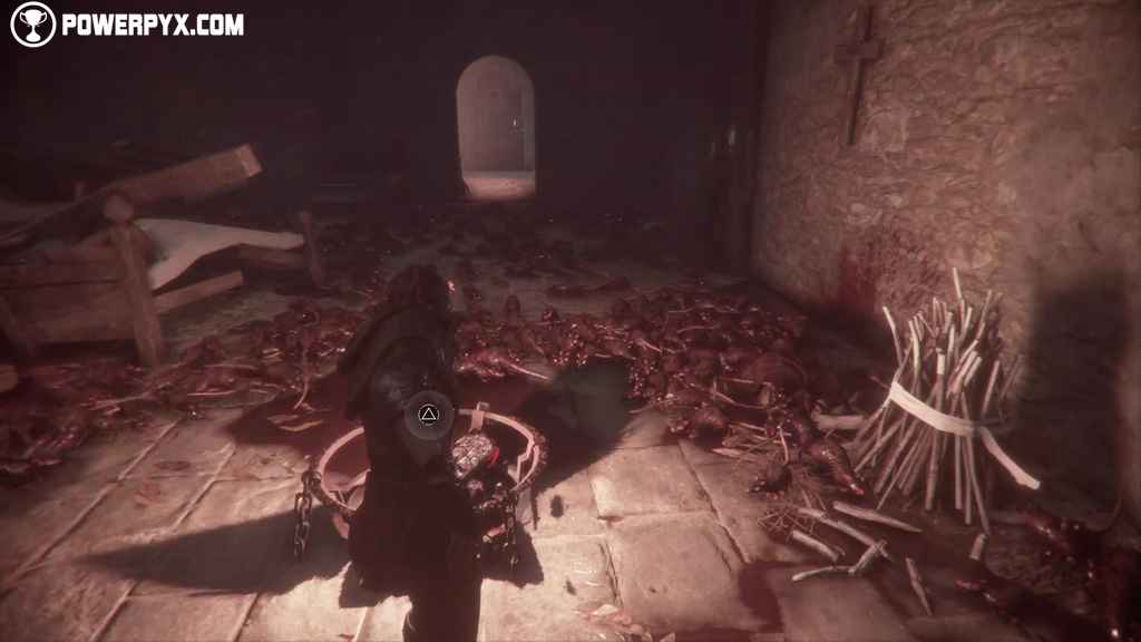 Walk with the Priest. Soon after you will find out the reason why the priest was so adamant about leaving the church. In fact, the church is infested with rats which literally devour the priest as the light of the crypt’s candles goes out. The key to surviving rats in the game is fire.