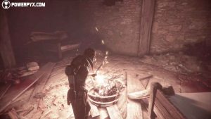 Now, go back to grab yet another stick, but this time light it using the brazier you’ve just lit. With that, approach the brazier Hugo dropped down and light it yourself.