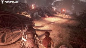 As you make your way to the farm, Hugo will suffer from another fit to his head. He’s getting weaker and Amicia volunteers to shoulder him.