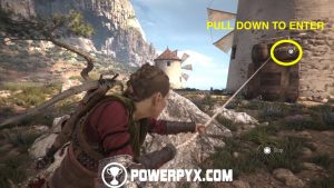 As for windmills #3 and #4, you just need to deal with #4 with #3 being already on. Go to the back of windmill #4 and crouch under the wooden cart, then up the ladder. Cast a rock at the door lock through the window to unlock the door, then drop back down and access the windmill to turn it on.