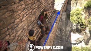 Inside the building is also a tool chest with upgrade materials. Go back to the main path and up the ledge. As you keep going up, flank the rocks and you should spot a hidden ledge. Climb up here and you’ll find Secret Chest #7. If you don’t have a knife, you can replay the Chapter later via Chapter Select to get the Knife where Secret Chest #6 was, it still counts for the trophy when you get it via Chapter Select.