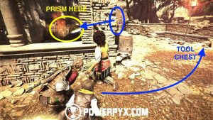 It should be mentioned that you should presumably already have a knife when following this guide (assuming you haven’t used any for kills) at the tower for secret chest #6. Therefore you should open the secret chest and THEN grab the knife at the bottom on your way back out, and make sure not to recycle it, otherwise you won’t have a knife for secret chest #7.