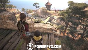 Continue down the same path until you see a second bird statue on your right. Shortly after the second bird statute, you should see a house with a woman leaning outside the open window in front of you, on the right. Enter the garden behind the house and go all the way to the end of the path, flanking the cliffside and you’ll find a big tree that when interacted with unlocks Souvenir #15/21 A Thousand More Years.