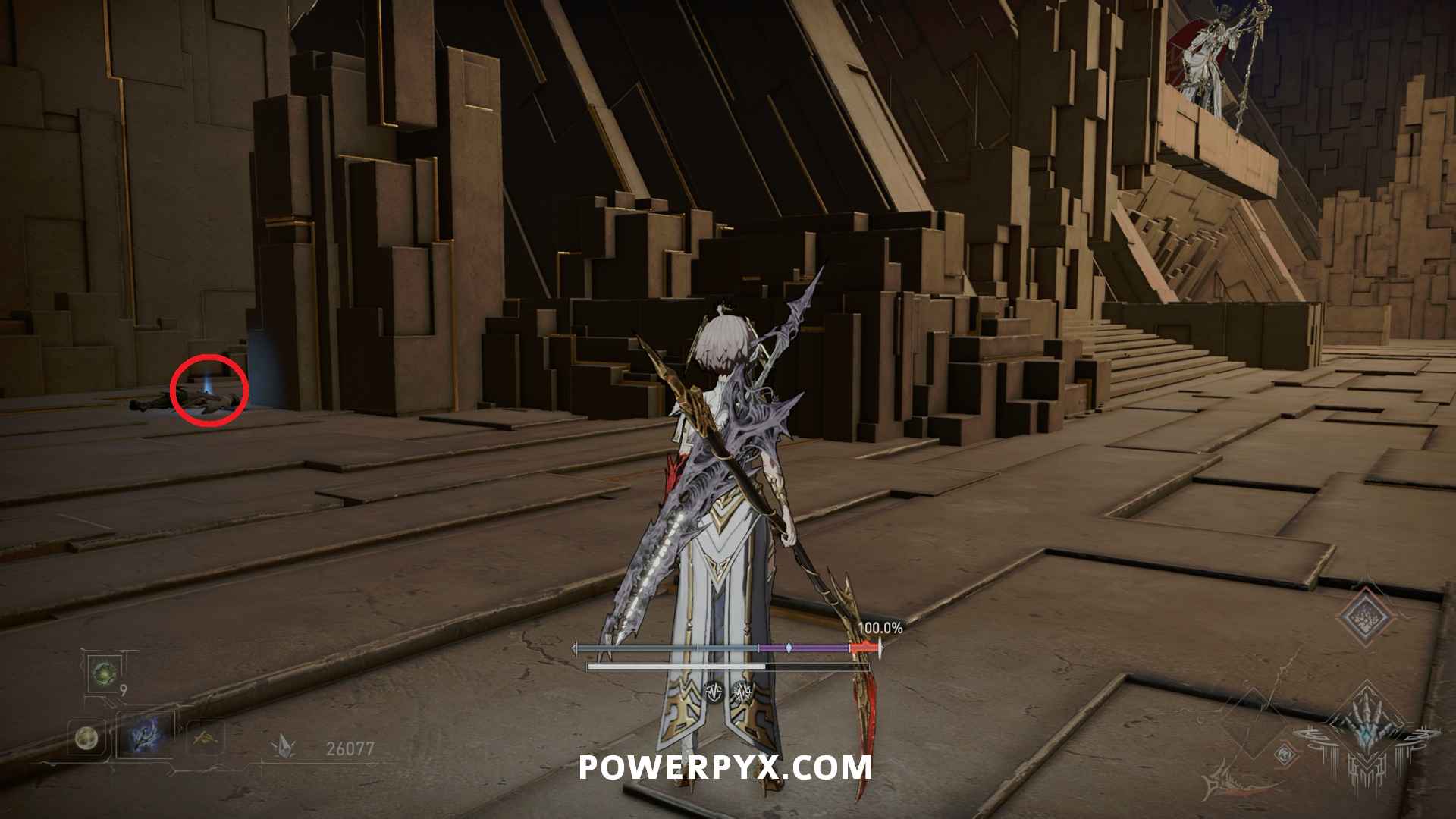 From the Branch follow the main path until you hit a split near a big statue where you can go left or up a large set of stairs to the right. Go down the path to the left to a large room with a patrolling red hammer enemy (Part IX is located to the right). Continue into the next room and down the hallway to the right where the enemy casting the ground AOE spells is located. Pick this up from the body beside it.