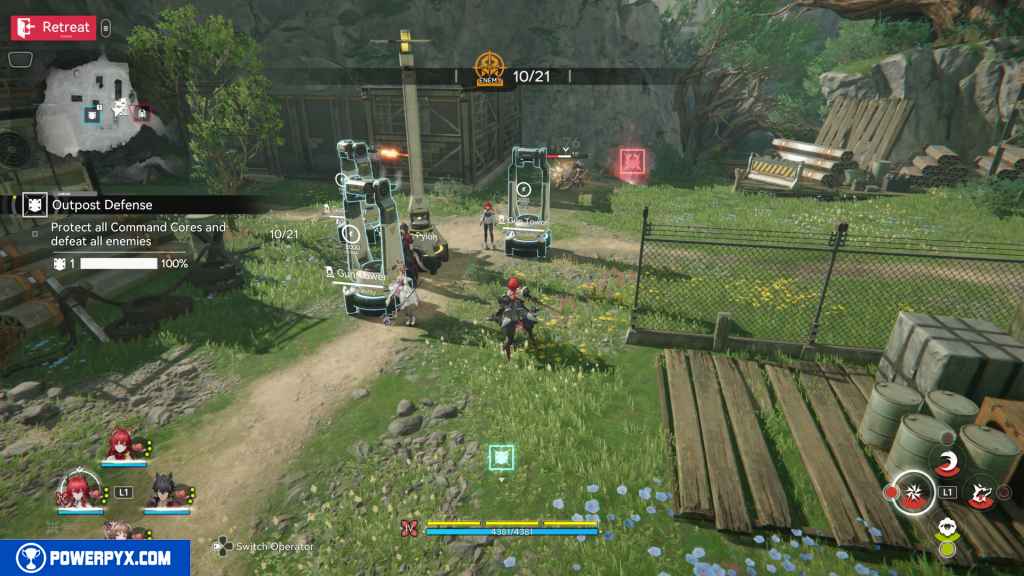 once you have your defenses set up to begin the encounter. You must defeat 21 enemies, and you can use your party to get it done faster.