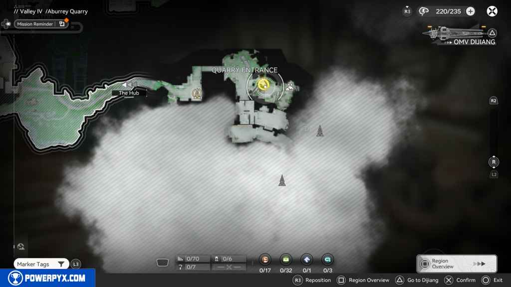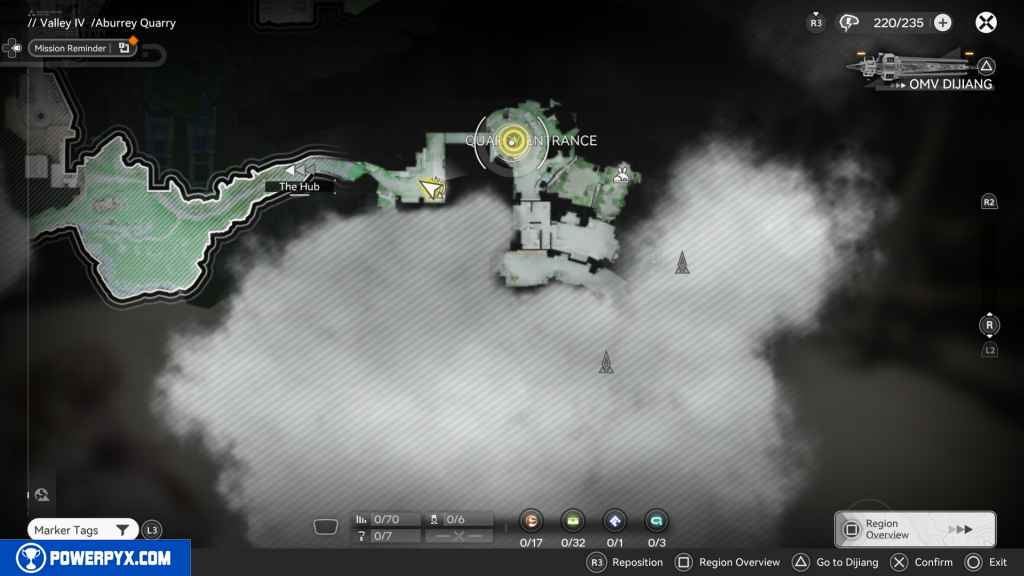 - Starting Location: Valley IV > Aburrey Quarry