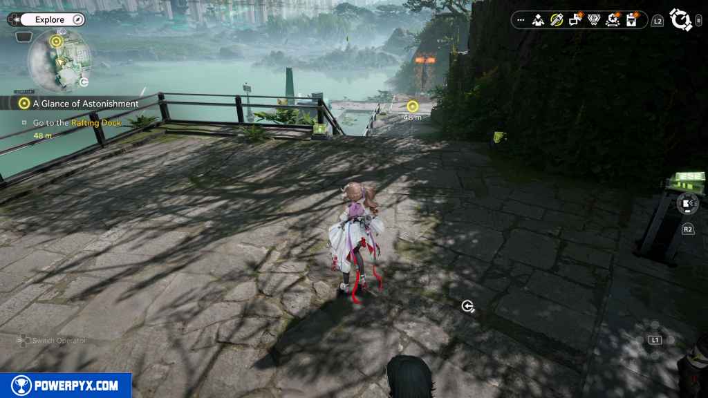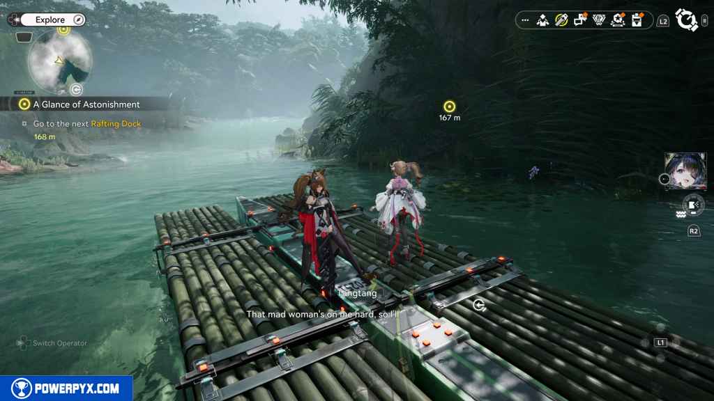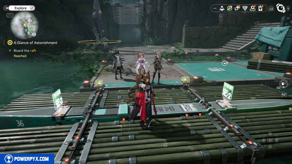 Enjoy the ride down the river. At the next dock, step off the raft to trigger a cutscene.