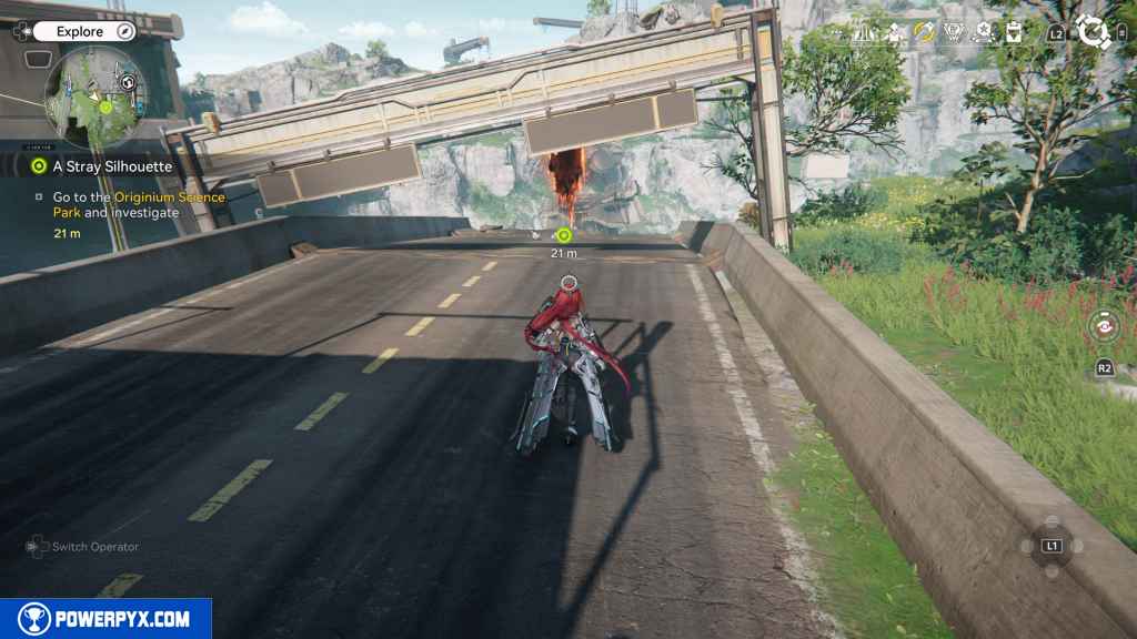 Approach the Protocol Space entrance at the end of a broken bridge.