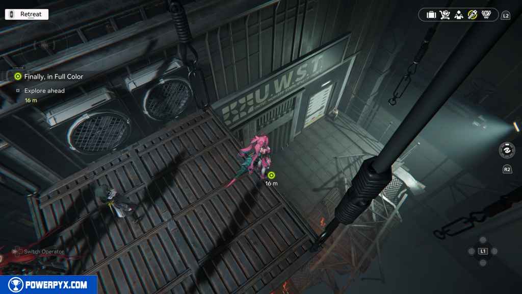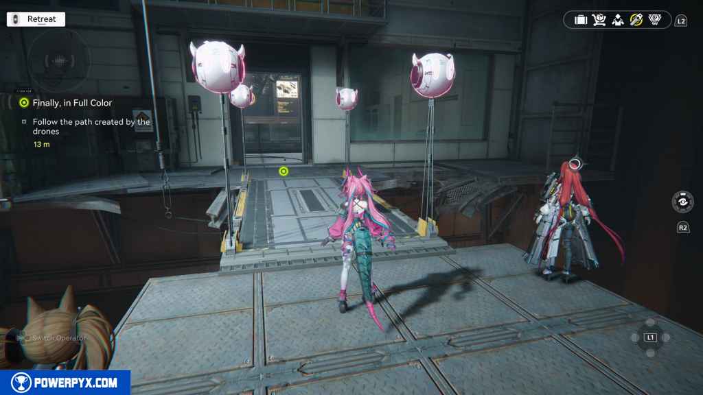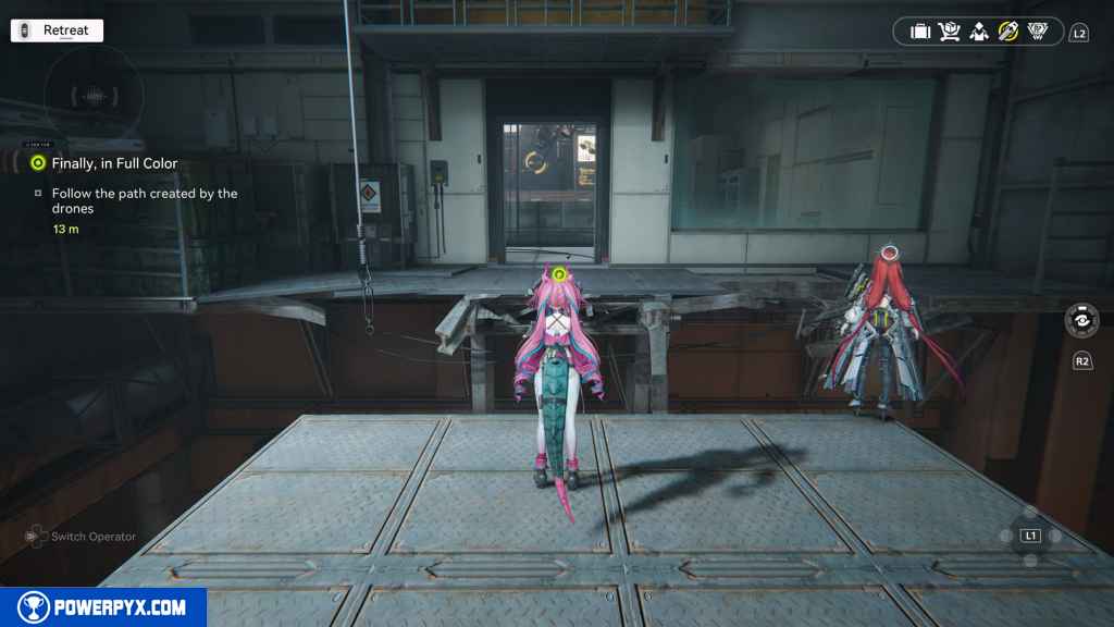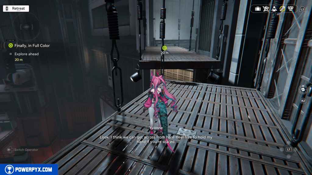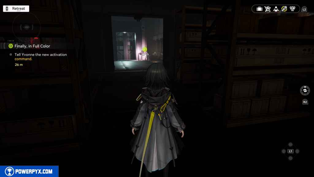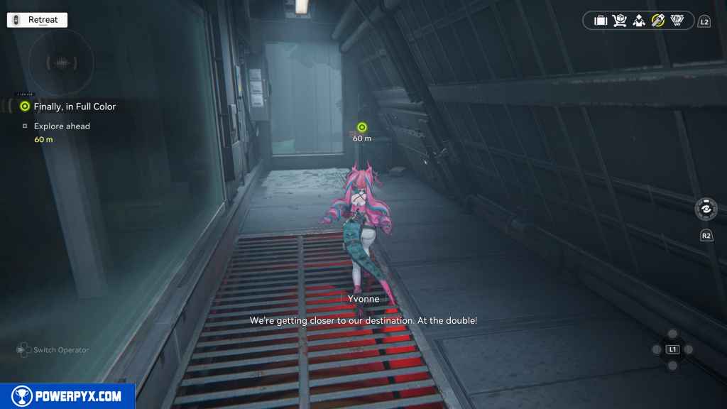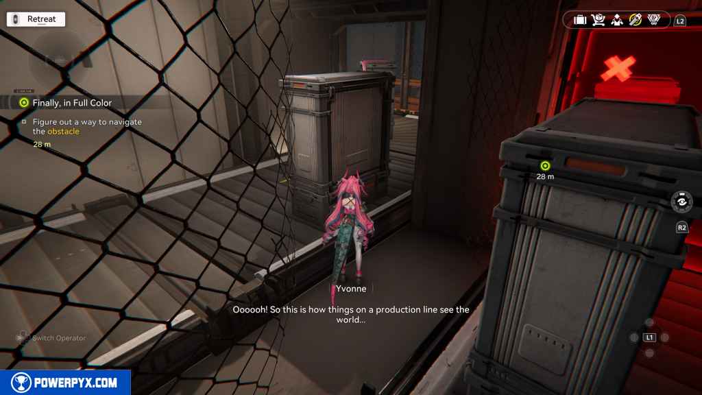 - Talk to Yvonne, go to the underground production floors
