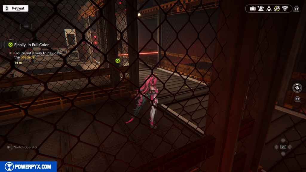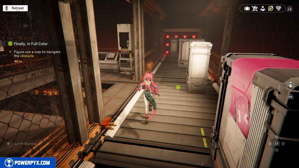 Go left to another gate on your right. Open it with the control panel.