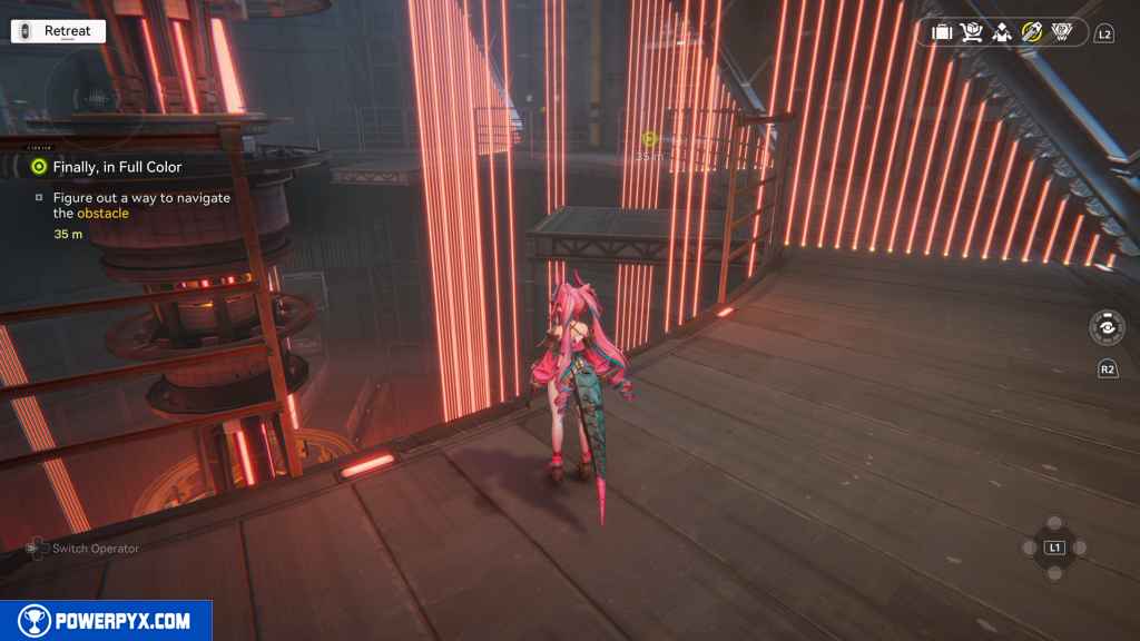 After the lasers, get off the platform.