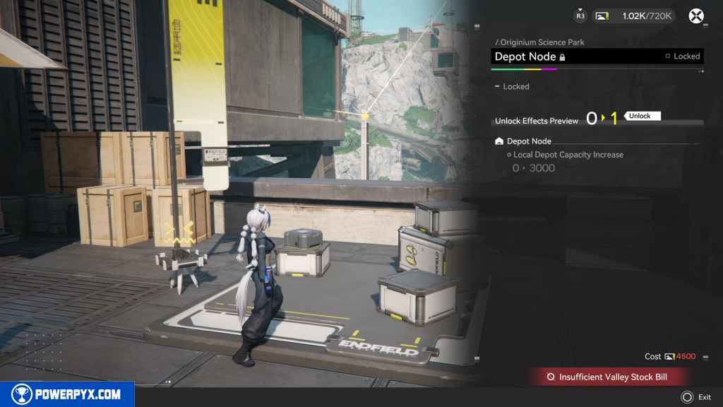When you return to the unlock screen, it will still say you don’t have enough Valley Stock Bills. Back out of the menu and interact with the depot node again. It will work now.