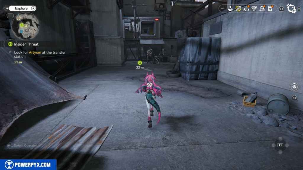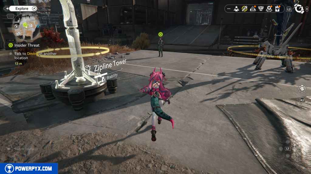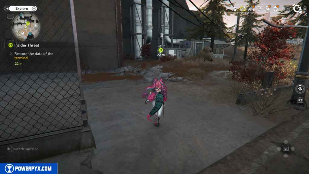 Follow Dmitry east to a small power area. In the area, you can find a terminal. Activate it to repair it.