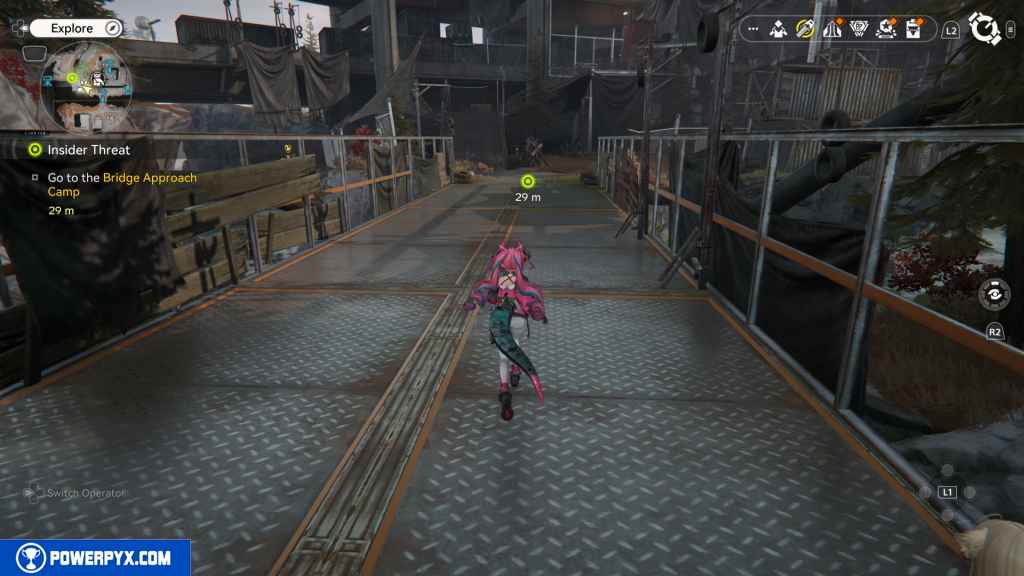 Head southwest across the bridge to the Approach Camp.