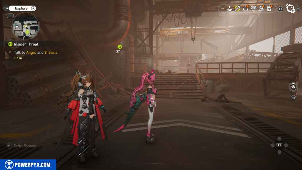 Head past them, then turn left. Follow the path and turn left again. You should see some stairs leading up to the next floor, take them, and you should reach a control room where Angro and Shawna are.