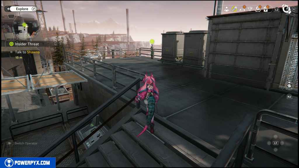 Shawna can be found east of the Power Plant. Head north from the TP point in front of the power plant and go up the stairs to find Shawna.