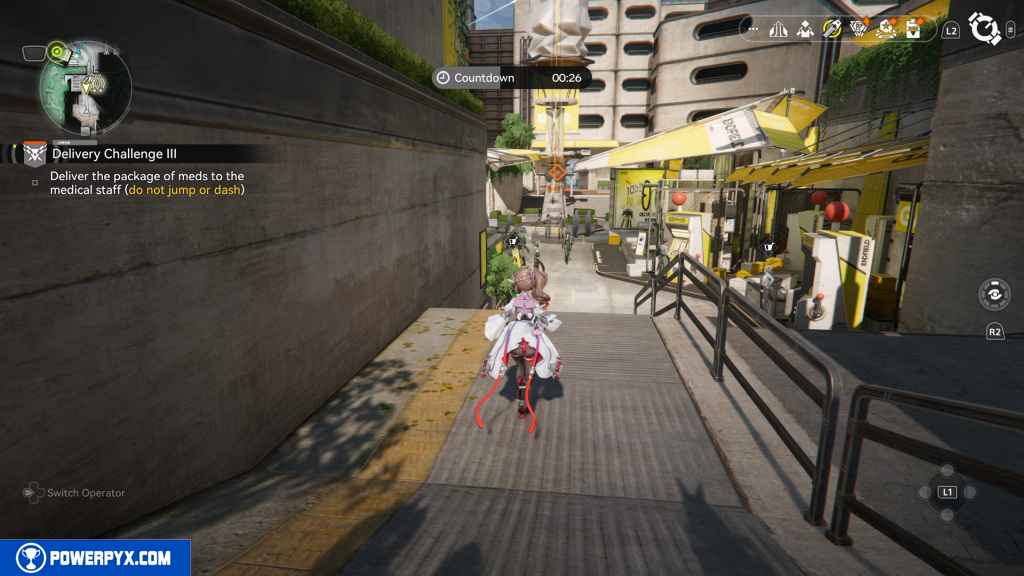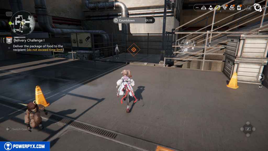 This prompts a dialogue choice. You must choose “Alright. Let’s go. (Start TIMER).” This activates “Delivery Package 2.”