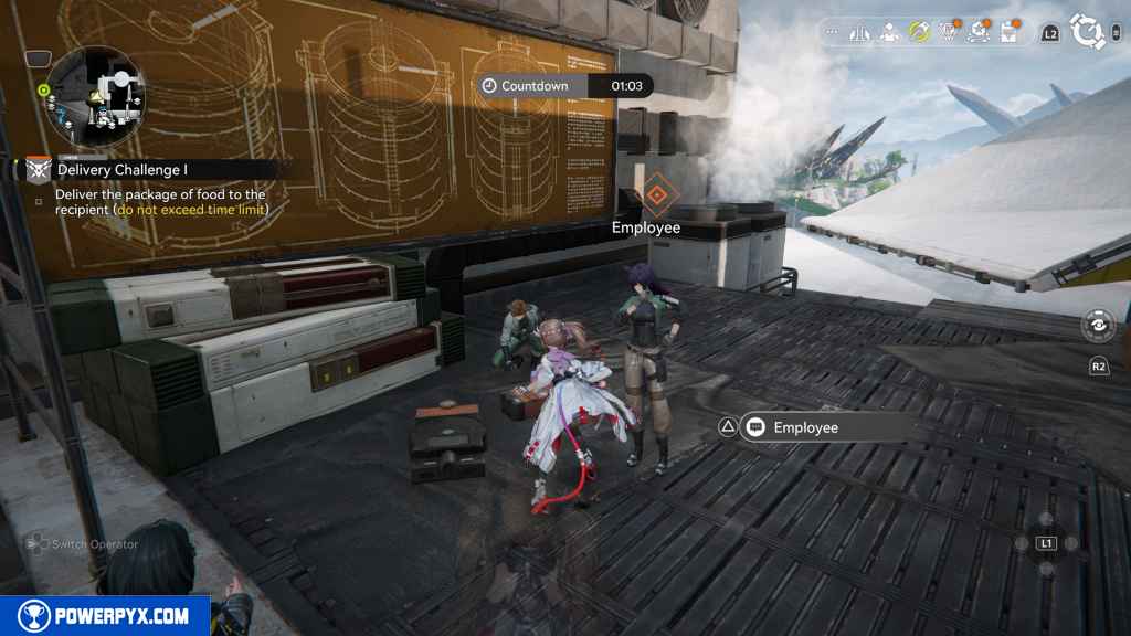 This prompts a dialogue choice. You must choose “Alright. Let’s go. (Start TIMER).” This activates “Delivery Package 1.”