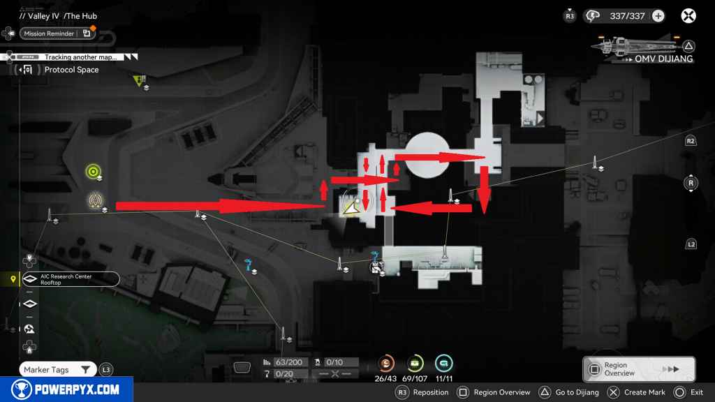 This one is a little more challenging but still very doable. The destination is just south of the Core AIC Area. Unfortunately, you cannot teleport during this challenge. Just make sure to sprint using Circle.