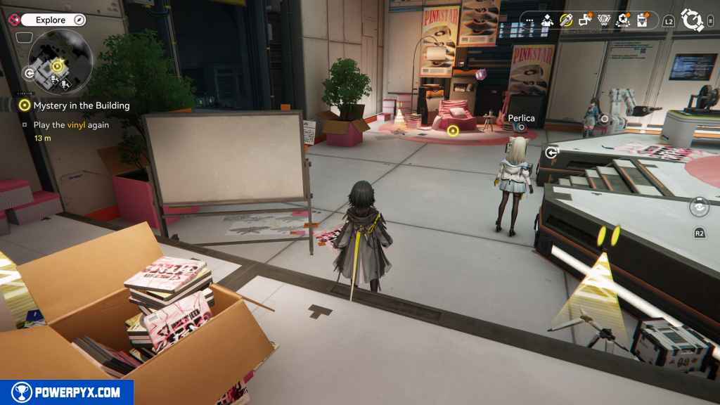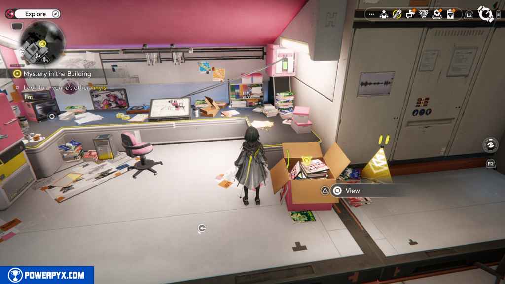 When you regain control, head to the vinyl player. This prompts you with a dialogue option, but neither of them is what Yvonne wants. Try both options to progress.