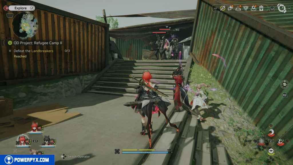 Head into the camp and approach the stairs, where you will see some landbreakers.