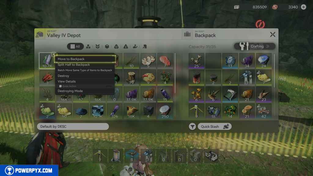 Make Amethyst Parts and put them in the Backpack (0/50)