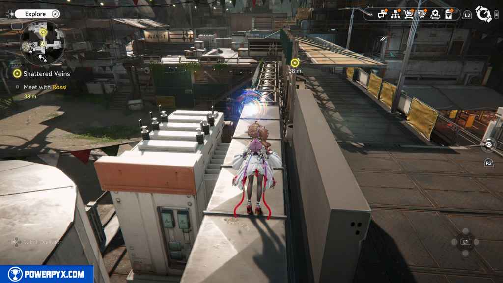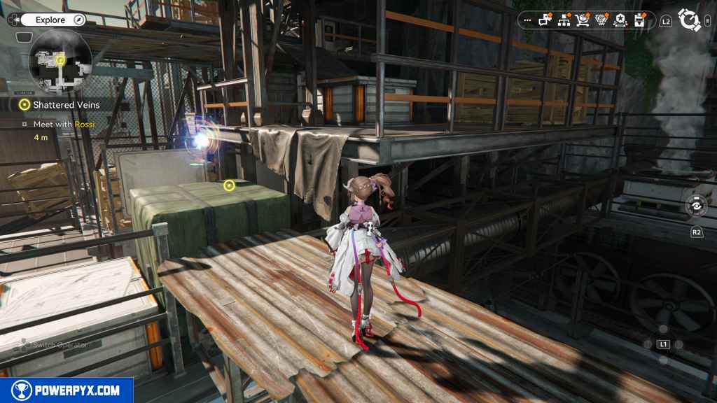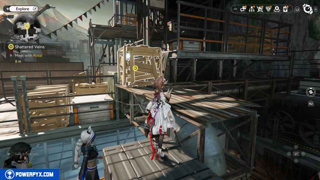 Here, before going up the boxes, enter the gap to the left of the vertical beams. A chest sits at the very back.