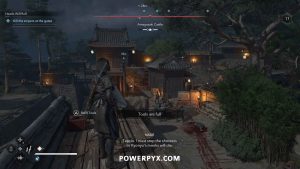 With that said, there is a building in the middle of the courtyard that has a window. You can use this window to get out of sight of Wada Koretake. When he starts searching for you, sneak up on him to assassinate him.