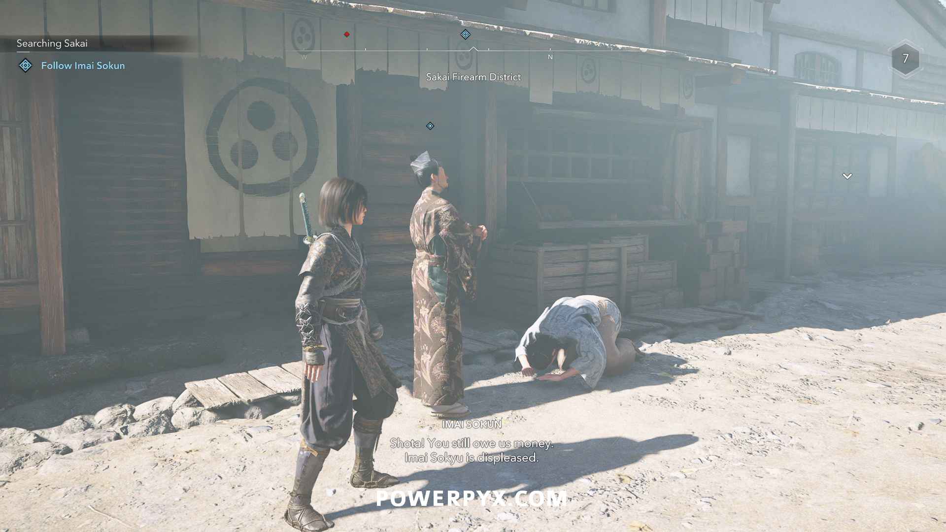 Make your way to the Sakai Firearm District and speak to the gunsmiths. There are three gunsmiths you talk to on the main drag, whom you can identify with