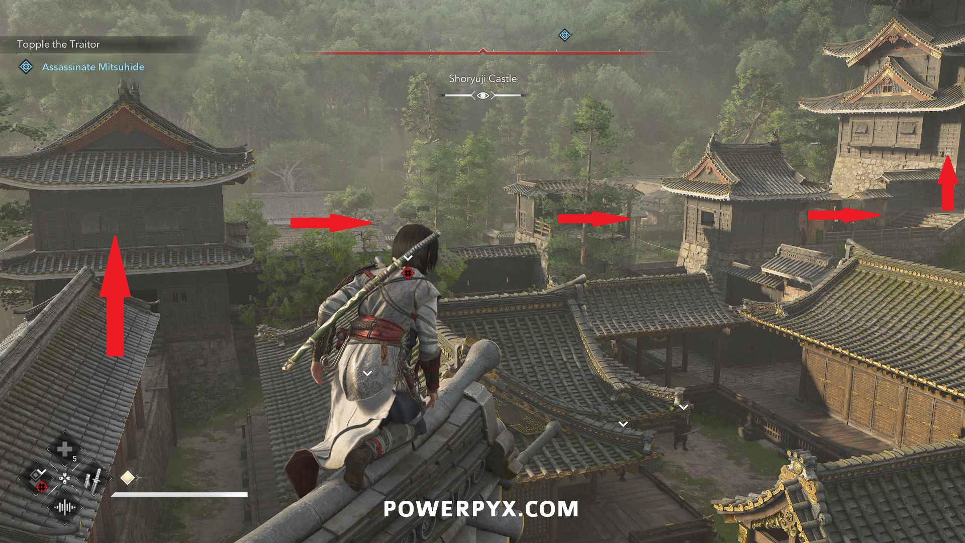 As Naoe, the easiest route is to turn left and run along the outside wall.