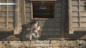 When you reach the castle proper, use your grappling hook to climb up to the first roof.