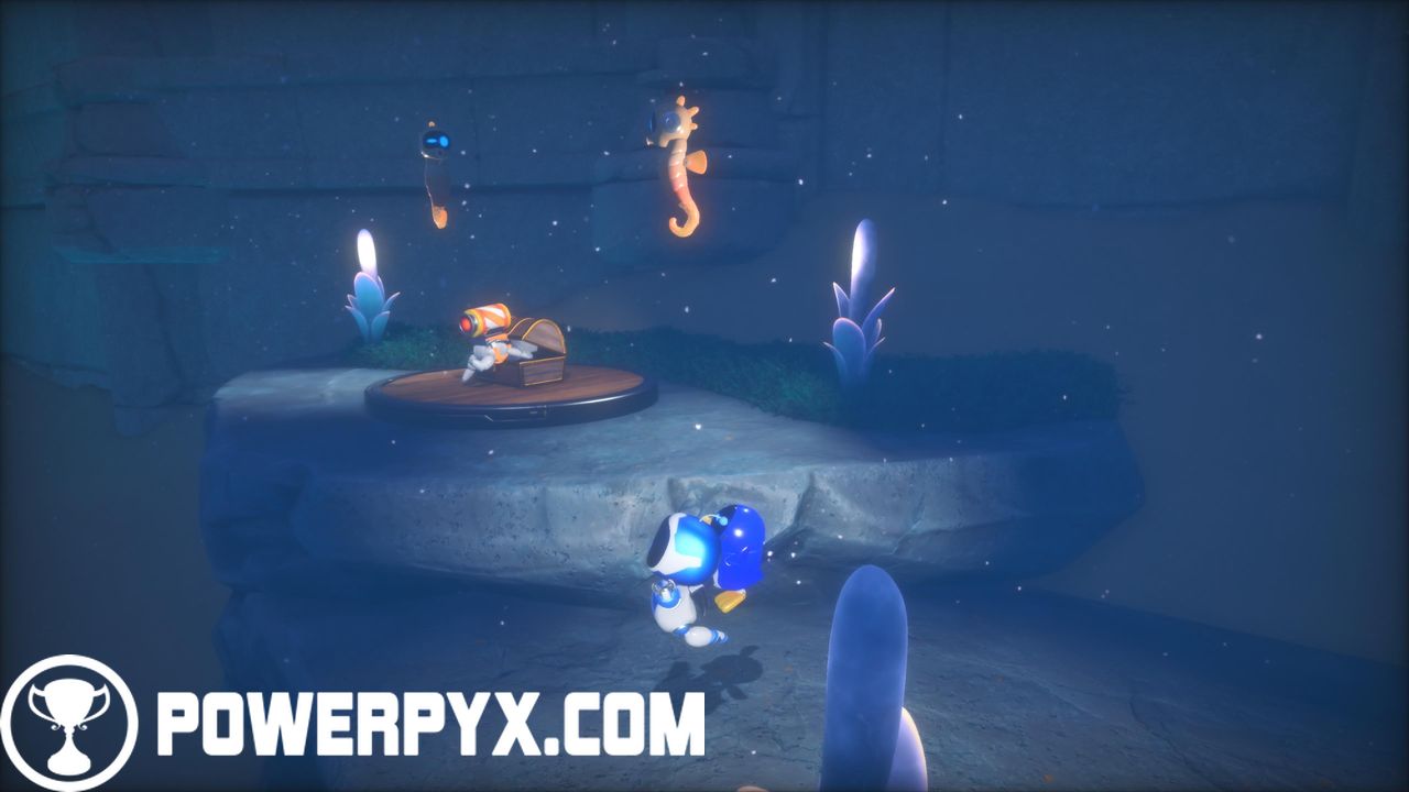 Bot #4: underwater at very bottom, enter the fish’s mouth to reach a hidden area with the bot.