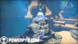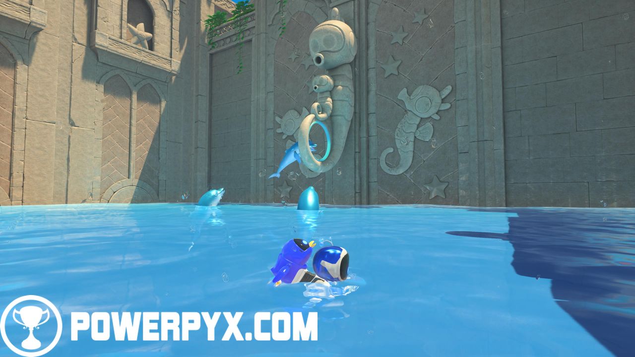 Trophy (Jumping Through Hoops): surface level, left side from where you first came in, you’ll find three dolphins gathered around a stone hoop. Jump through it for this trophy.