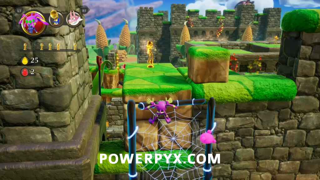 Statue 2 – You will need Web Wrangler from Stage 3-1 for it. Once you have it unlocked climb the webs on the left side wall.