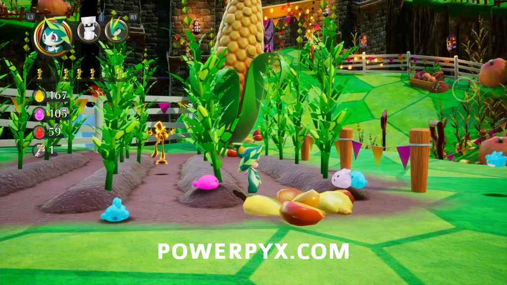 Statue 6 – Use Air Cat to reach the corn field, floating from the lower level up there.