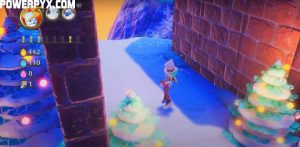 Statue 5 – On a platform, next to a Christmas tree, amidst some rotating spikes.