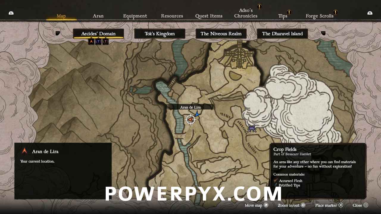 Crop Fields contains 10 Collectible Locations in Blades of Fire. This walkthrough will guide you to all the collectibles in Crop Fields in chronological order. Everything that’s needed for trophies and 100% completion is included. Nothing is missable, everything can be collected after the story. Remember that in order to collect weapon parts from Seneschals, you will have to equip a weapon of the same type as they are holding, that still has parts you haven’t learned how to make yet.