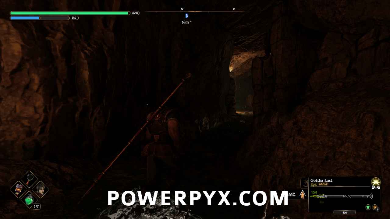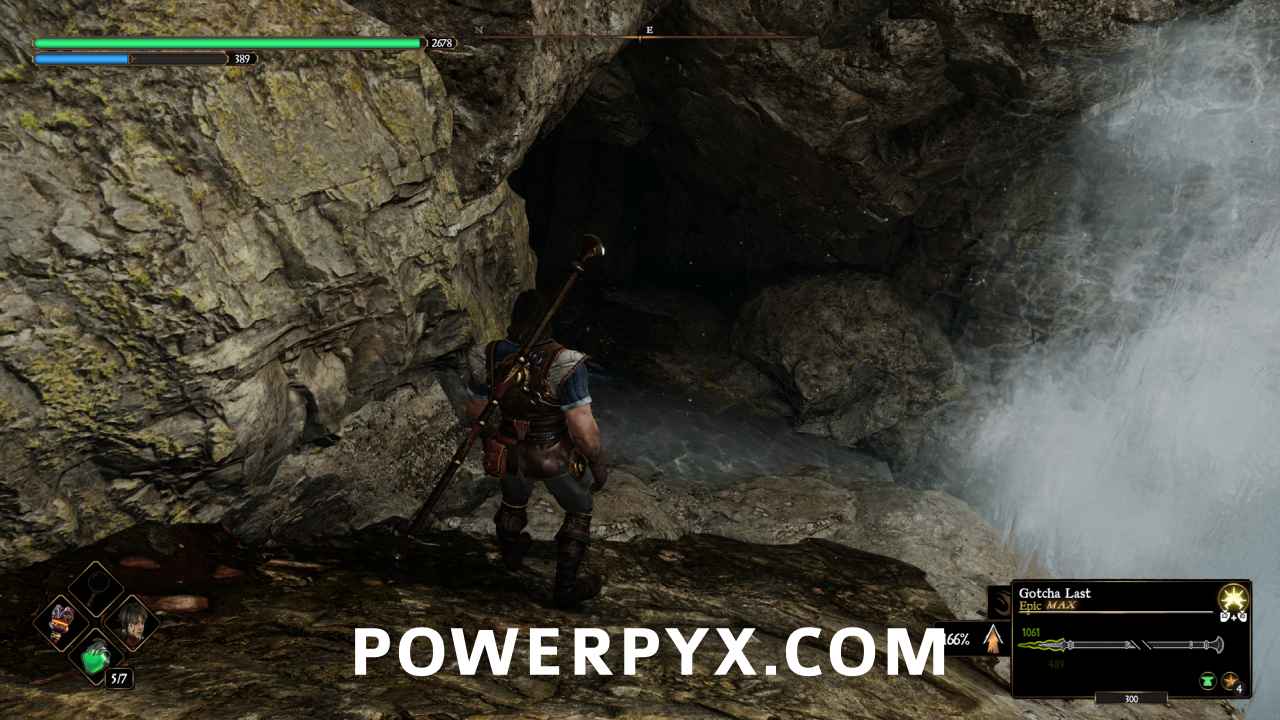 Once down, turn around and you’ll see a cave beneath the waterfall. Go inside and follow it to the end and you’ll find a chest.