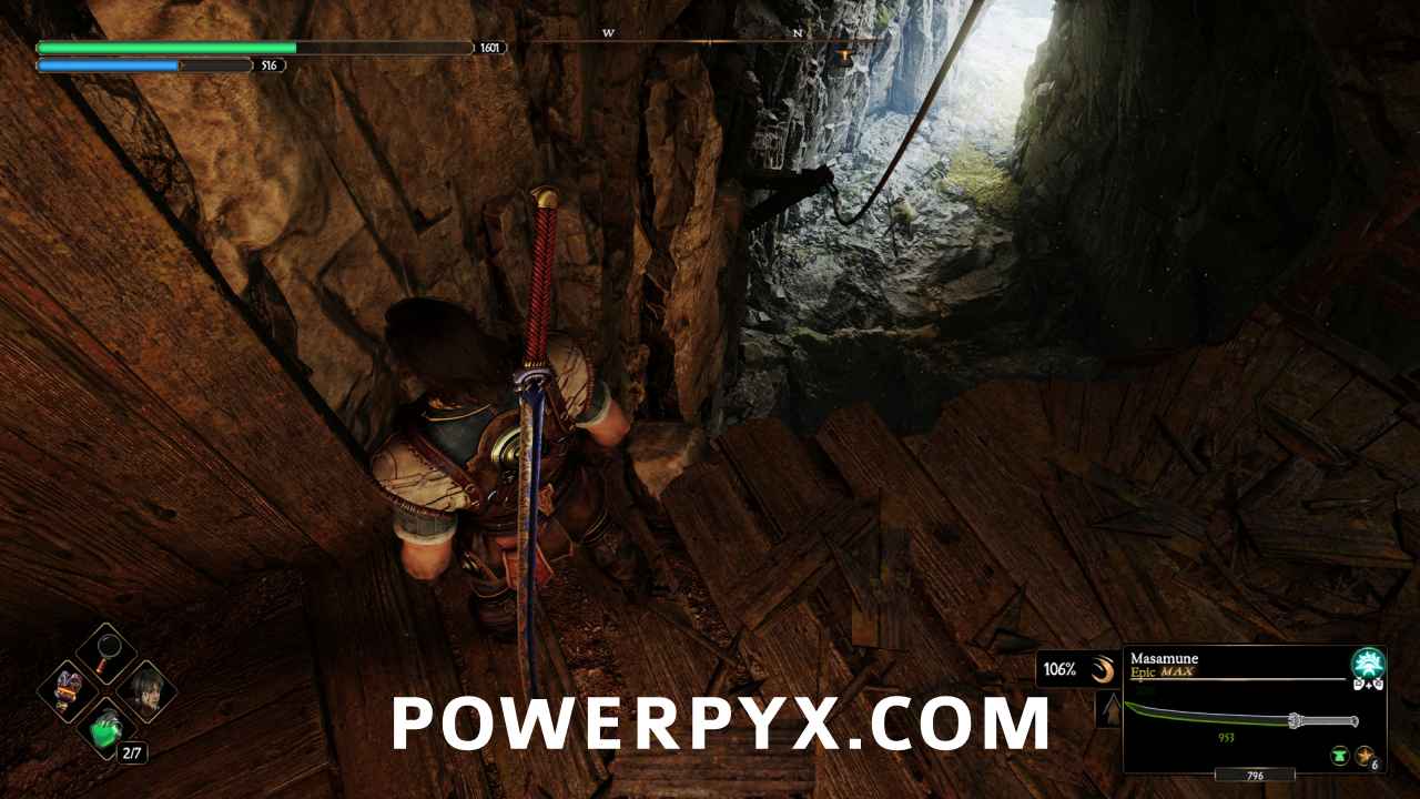 Once down at the bottom find a chest near the bridge supports. There’s a rope near the cliff to climb back up when you’re done.