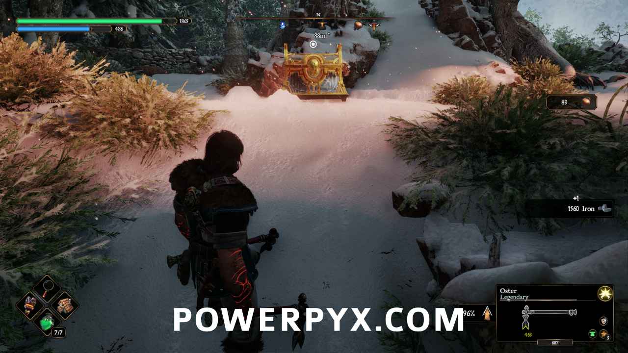 From the Riverbank anvil, just north of the bridge into the Dryads Forest West, head through the archway to find this treasure chest. Take note that the two Templars of the Sacred Steel crouching in the doorway do not give any Stamina Gem or Nerea’s Tear reward if you defeat them, so you might as well leave them be.