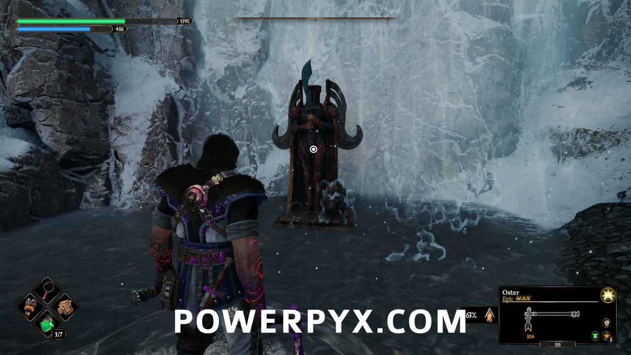 On the other side of the archway head to the north and through a vexer village, following the path, climbing up stairs all the way to the top where you will find a Templar of the Sacred Steel. If you hit their petrified form, the location of the Iridescent Crow that will free them will appear on your compass and mini-map. Head to that location and approach the crow, and he will fly off in the direction of the Templar. You will have to approach the crow multiple times to get them to finally perch on the Templar and trigger the fight.