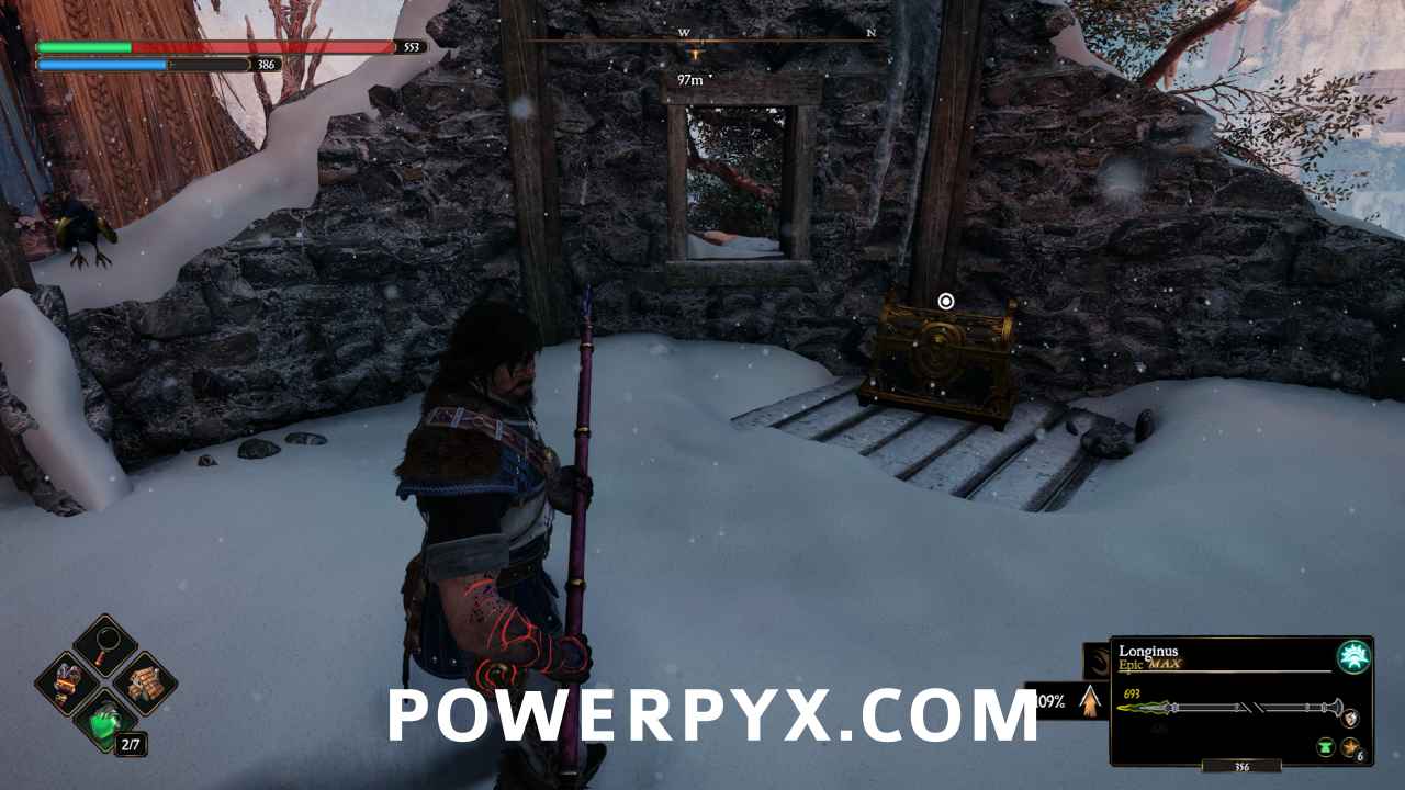Also near the exit is a ruined structure with a treasure chest beside it.