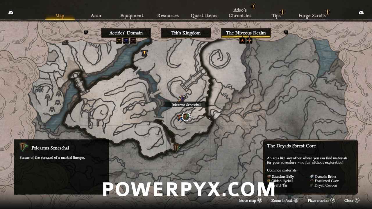In the Dryads Forest Core section, there are three bridges crossing the central river. Coming from the Riverbank anvil, cross the southernmost bridge into the west side of the section, following the road north and you’ll run into this seneschal.