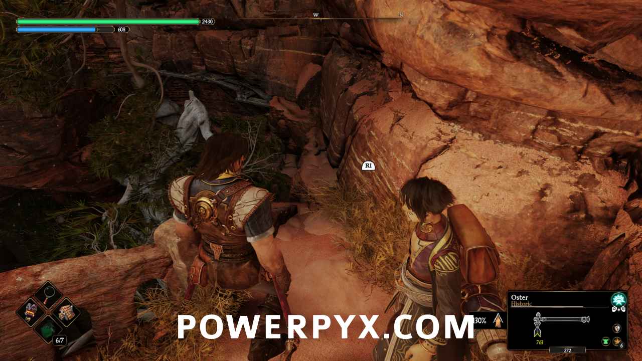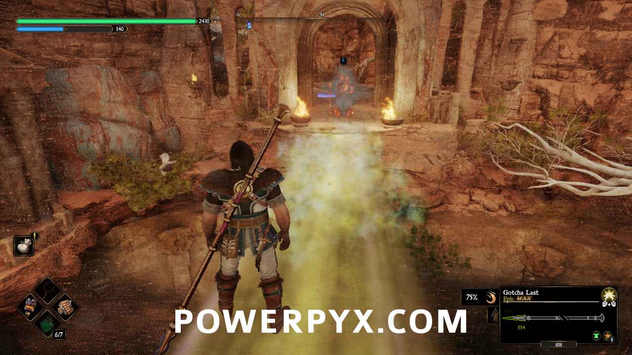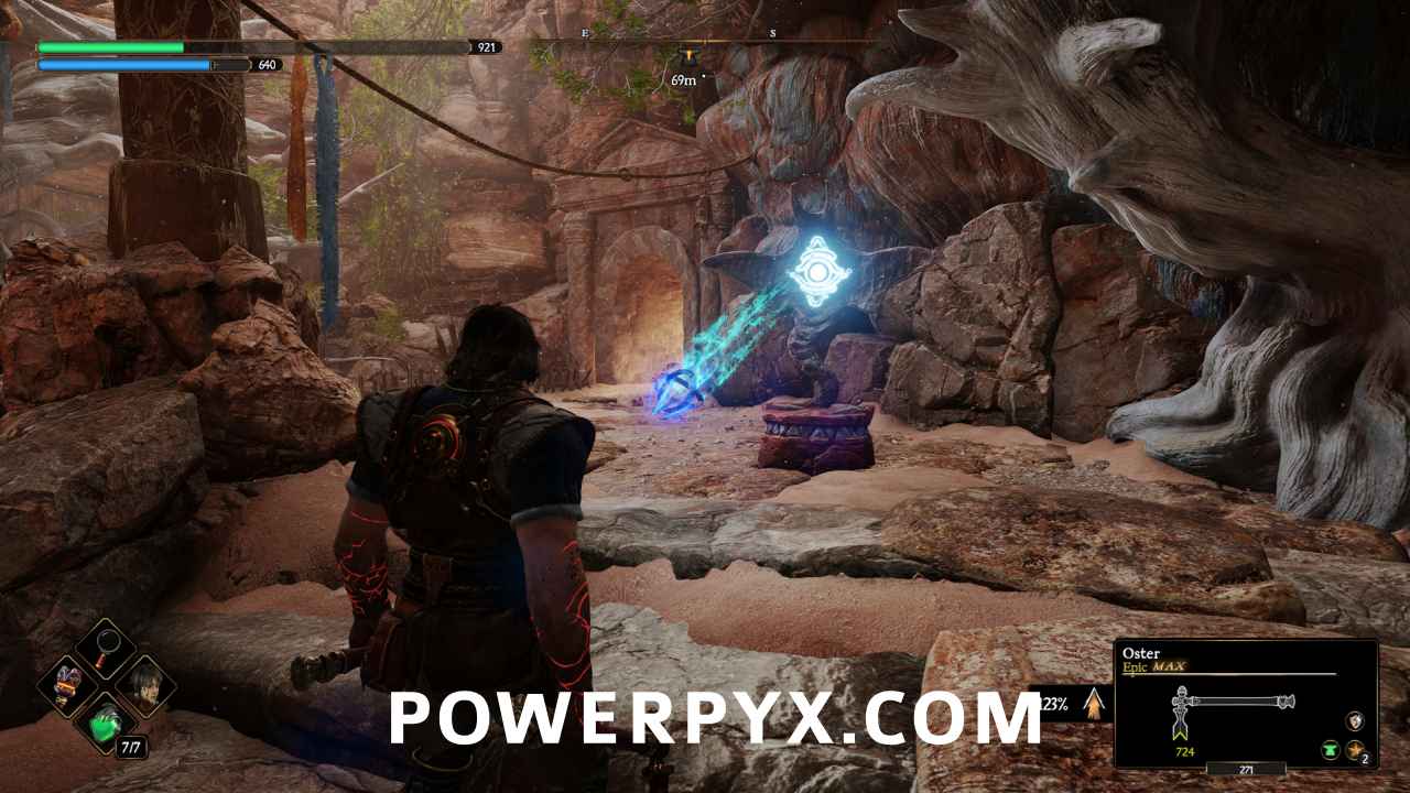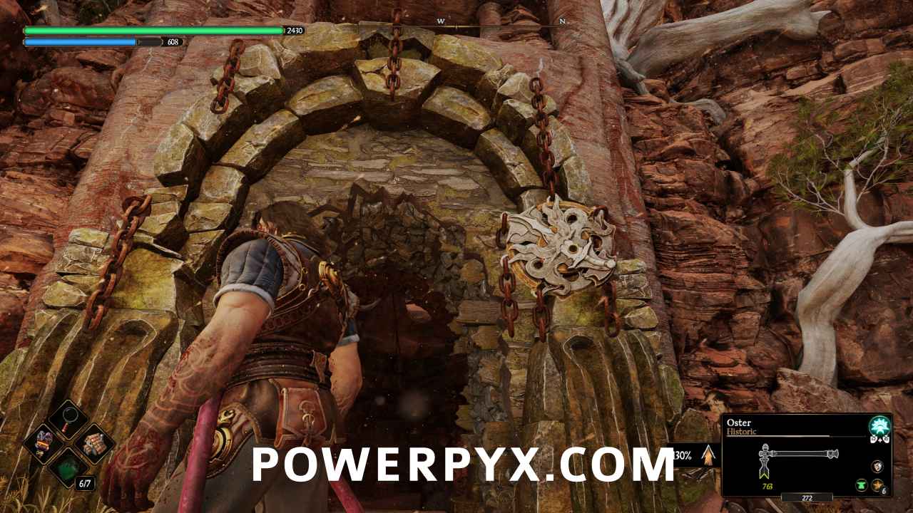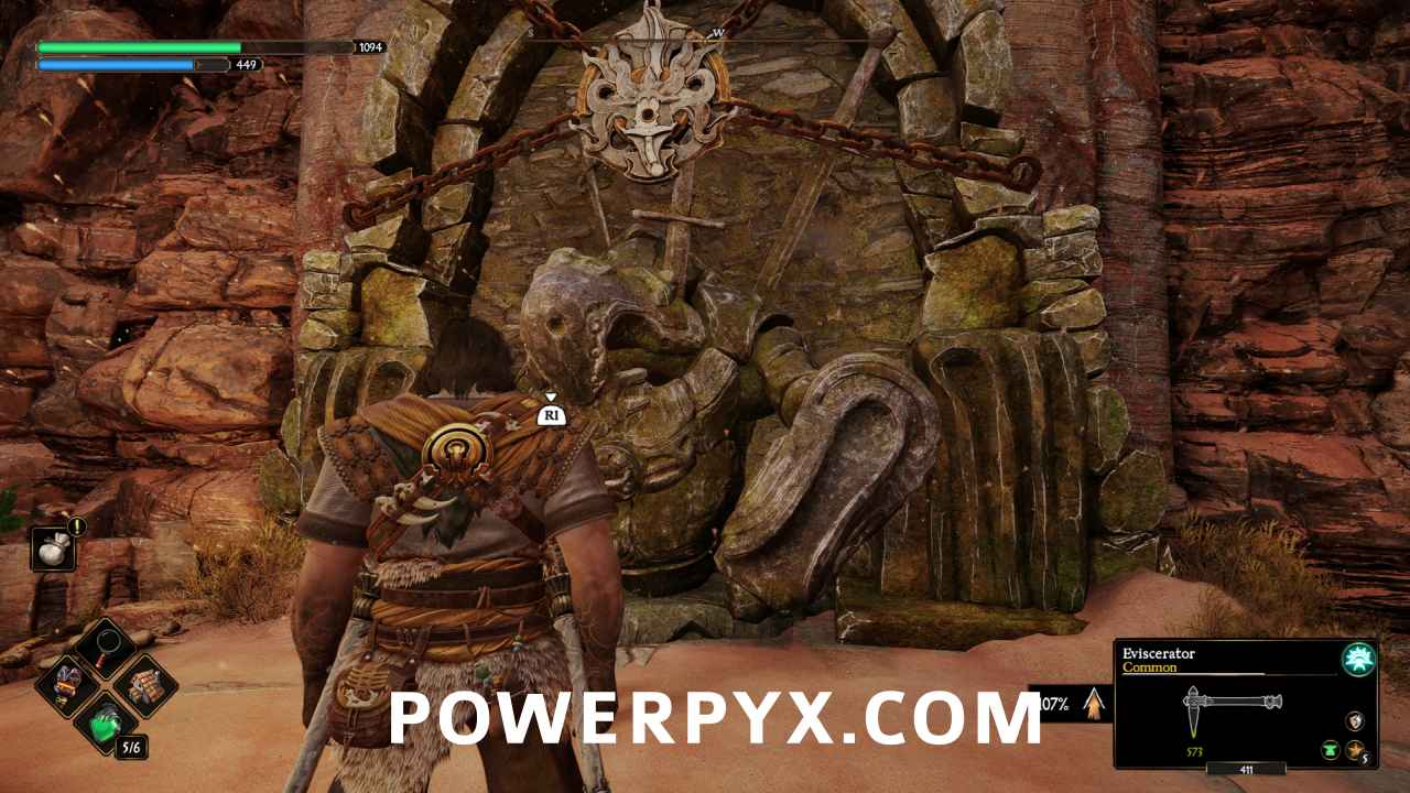 Head out the west door of the Central Hiss City and you’ll be on a balcony with a statue of Hurmuz Daurel. Charge the amulet by defeating Forger Sentinels, then activate it to blast open the wall across the gap.