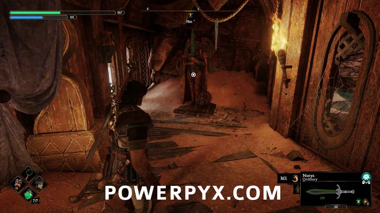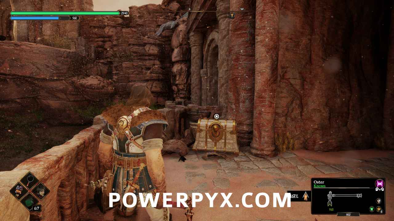 On the railing near the last chest is the Iridescent Crow that will activate the Templar of the Sacred Steel that you passed to reach the light bridge. The Templar will drop a Nerea’s Tear when they are defeated.