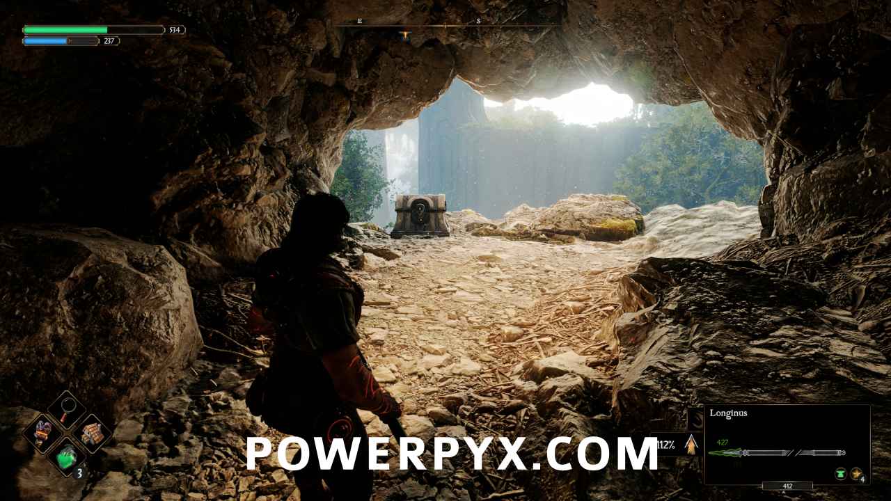In the same cave, turn to the south and you’ll see a treasure chest on the edge of a cliff.
