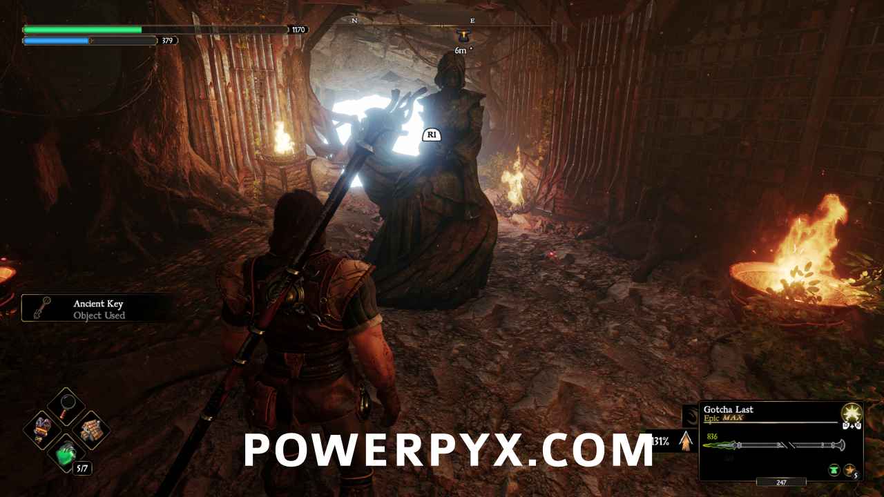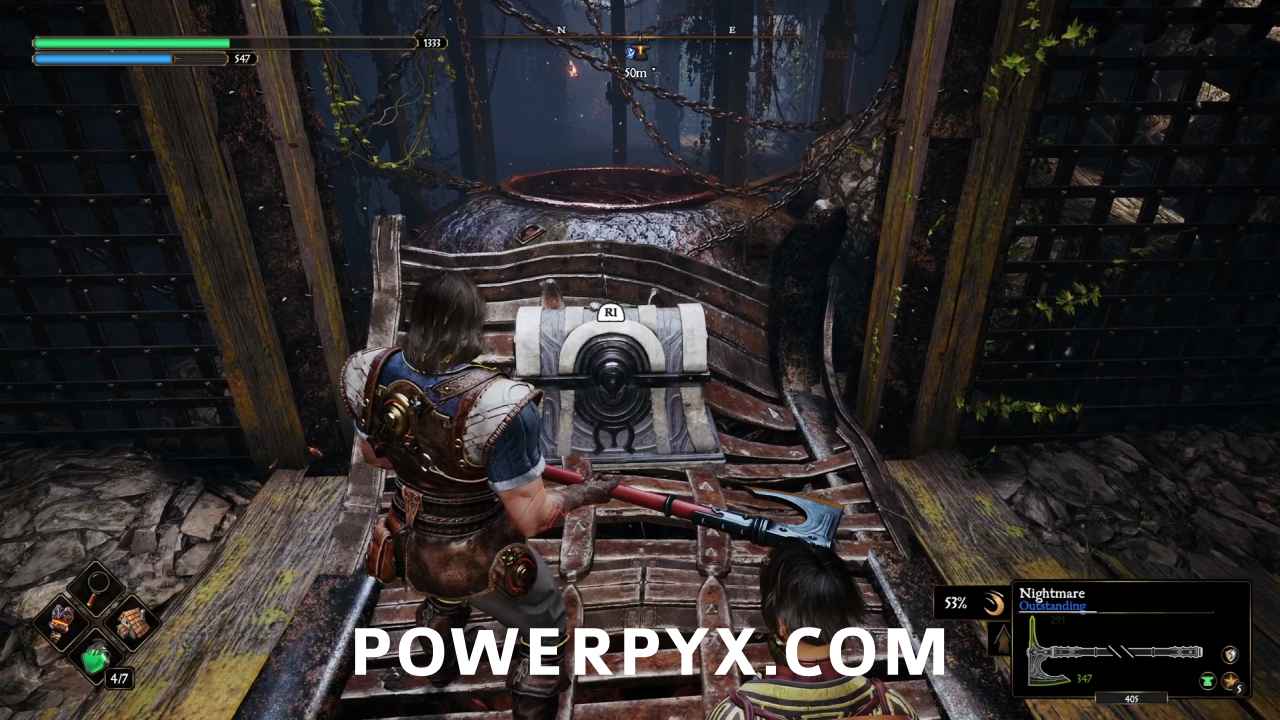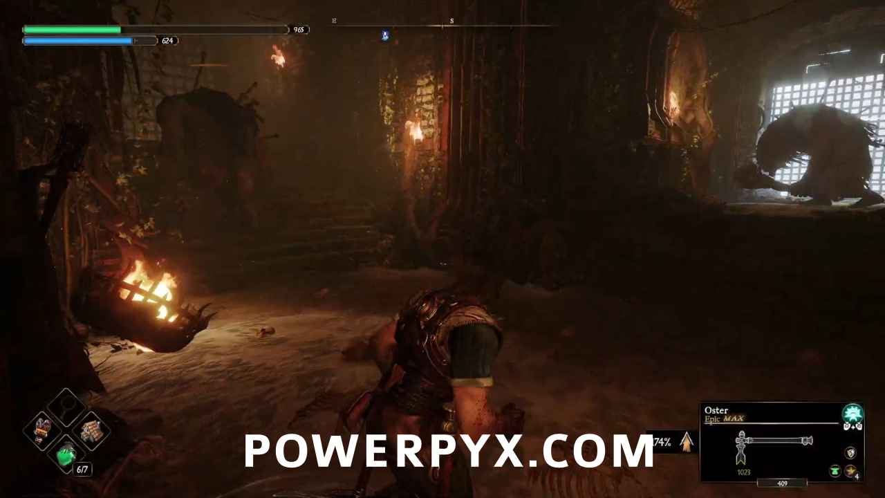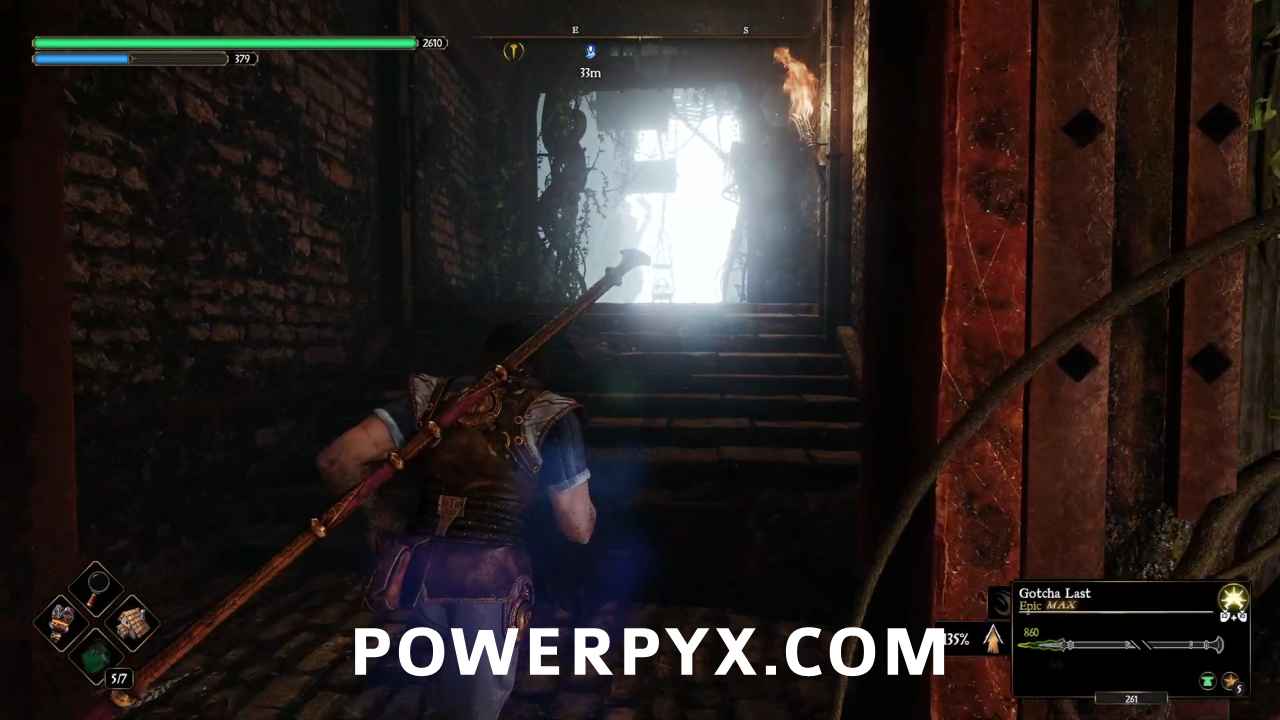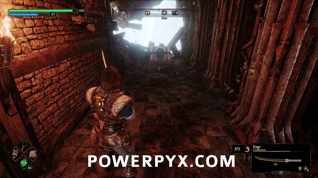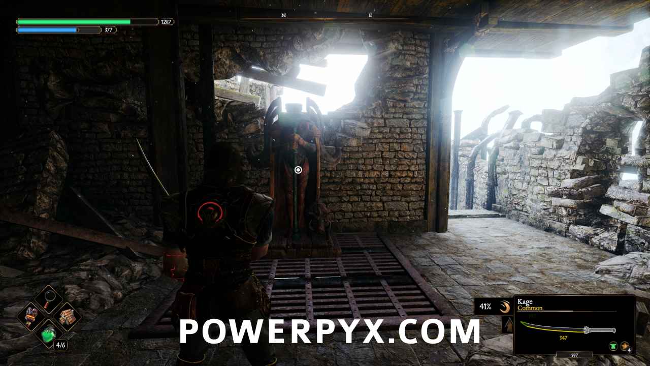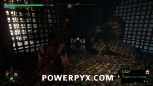 After you have interrupted Aecides’s regeneration twice, return to the courtyard and the doors to the northwest will open and the first Shunned Templar will appear. After you defeat it, head into the newly opened northwest area. Head down the stairs opposite the door, all the way to the bottom. If you haven’t already, steal the crank handle from the vexers and crank open the door to the north.