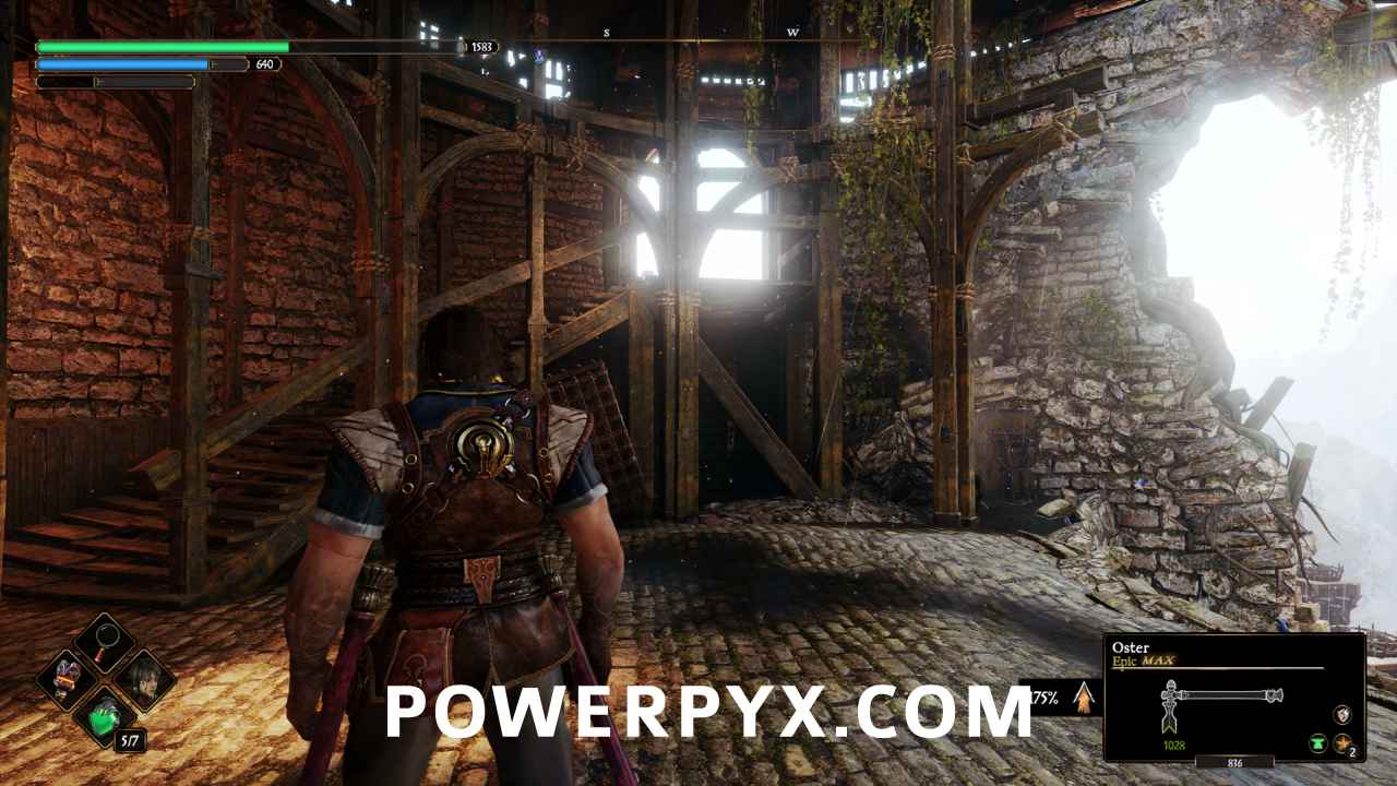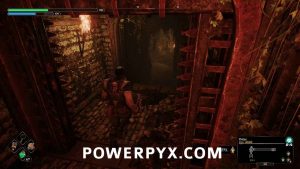 Climb back down the ladder, then go back to the previous room with the stairs. After you climb down one set of stairs, there’s a second set to climb down on the opposite side of the room.